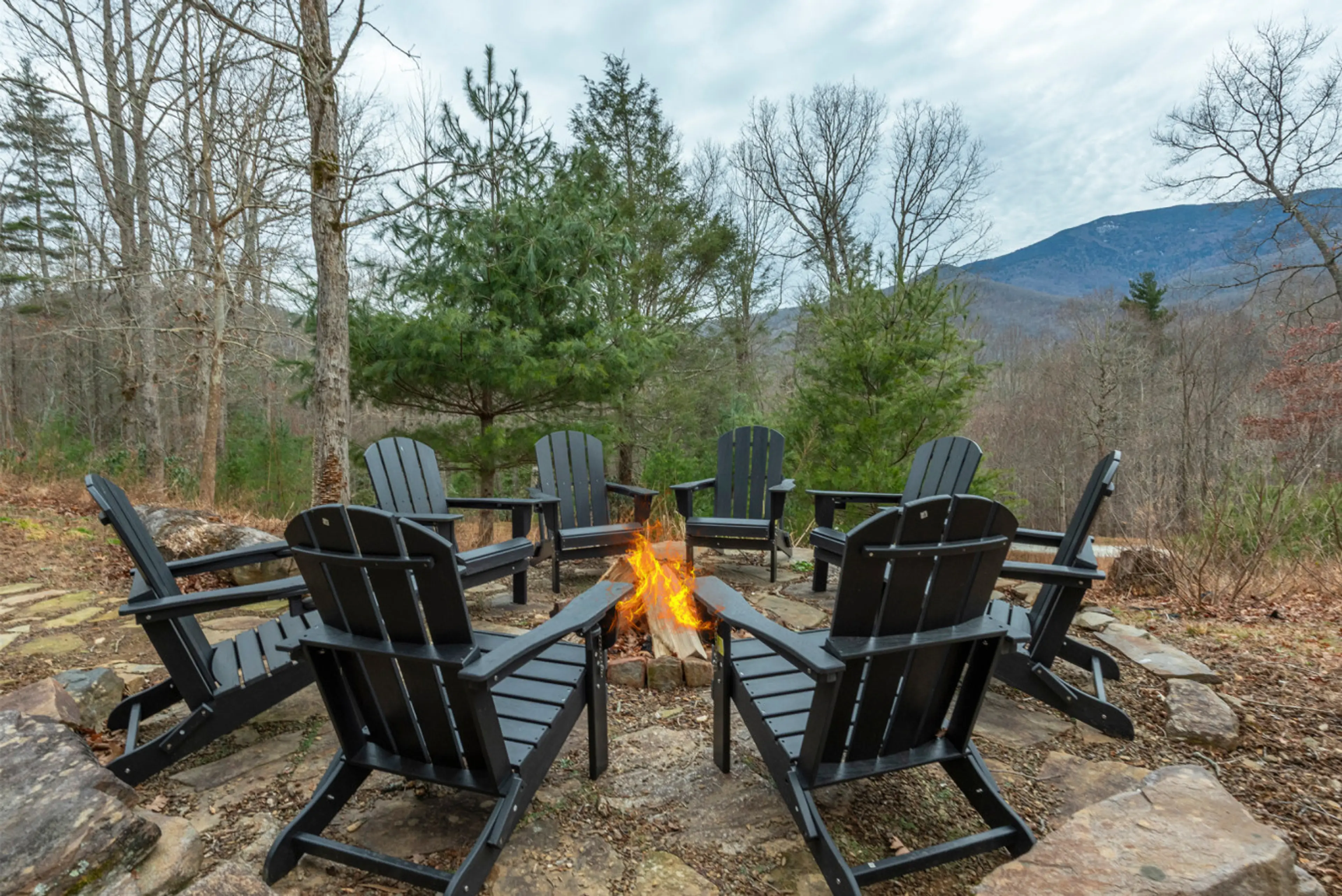 We are excited to offer you Riverrun Retreat with stunning mountain views, 2 connected homes, a total of 8 bedrooms, 8 full bathrooms, 2 half bathrooms, a large yard with a fire pit, firewood. This is a fully stocked home which includes linens, towels, laundry detergent, dish washer soap, iron, cof...